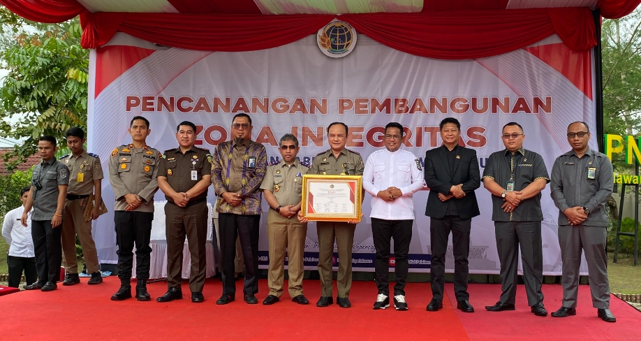 PELALAWAN (Fokuskepri) – Bupati Pelalawan H. Zukri SM menghadiri kegiatan pencanangan pembangunan zona integritas kantor Pertanahan Kabupaten Pelalawan Tahun 2025, Selasa (14/1/2025) bertempat di halaman kantor Pertahanan Kabupaten Pelalawan.