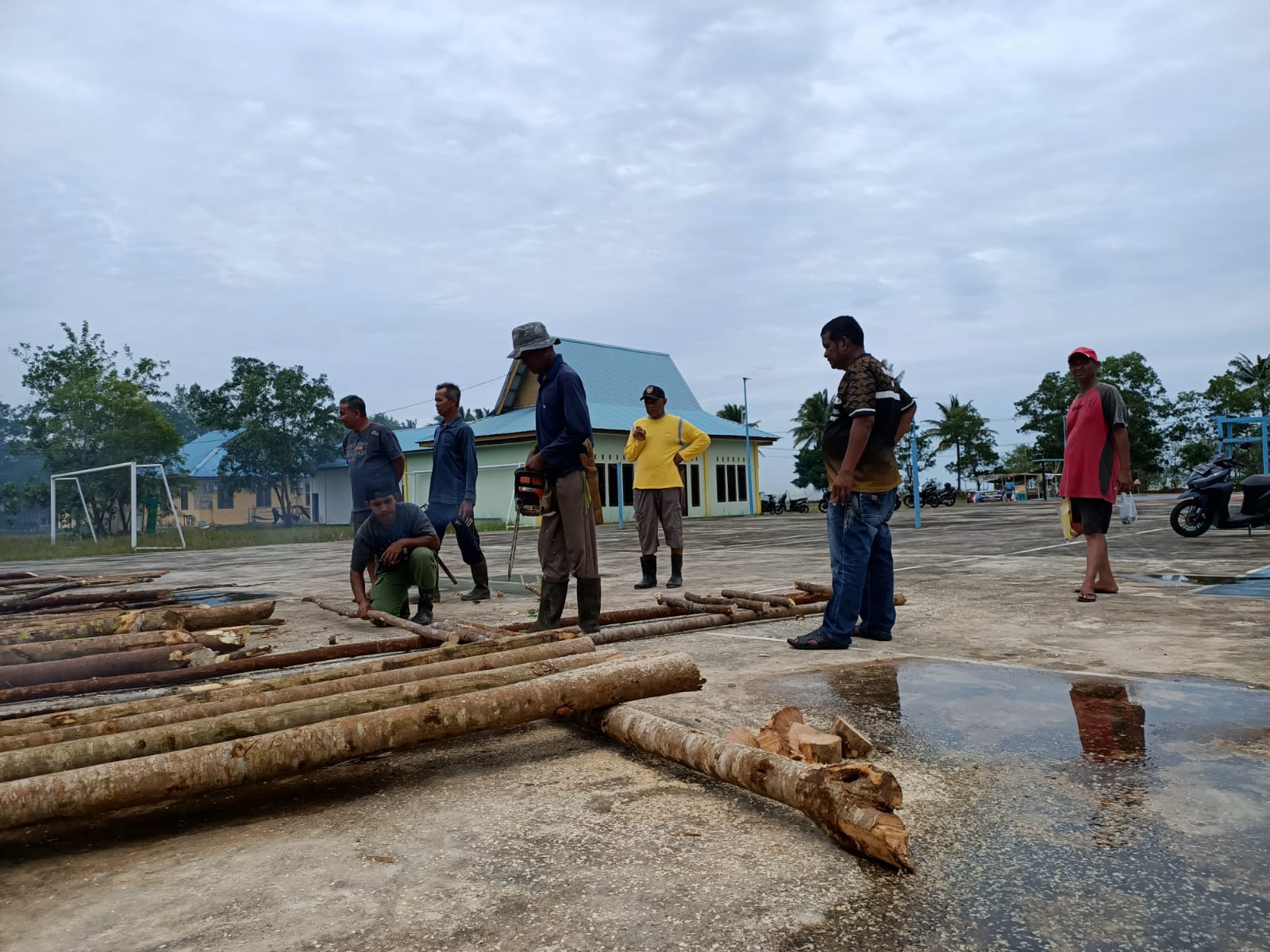 Camat Singkep Barat Bersama Kepala Desa Kualaraya Gotong Royong Membangun Fasilitas Penunjang Kegiatan STQ