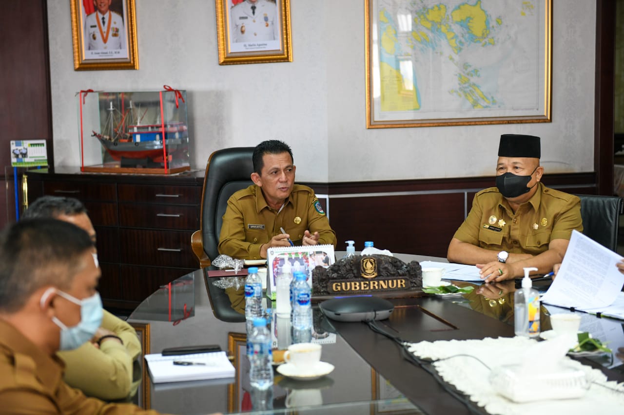 TANJUNGPINANG, Fokuskepri.com — Usai melakukan kunjungan kerja ke Kabupaten Karimun, Gubernur Kepri H. Ansar Ahmad langsung menggelar rapat teknis pengembangan bandara Raja Haji Abdullah Karimun di Kantor Gubernur Kepri, Dompak, Tanjungpinang, Selasa (15/2/2022).