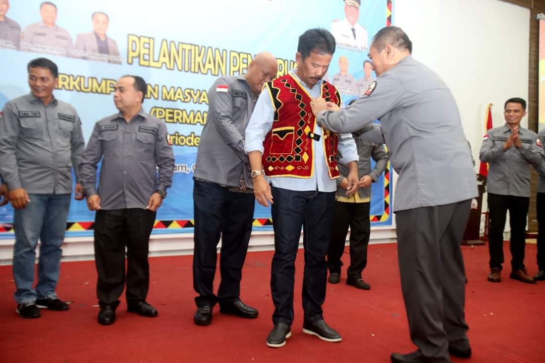 Hadiri Pelantikan Pengurus Permanira, Rudi Dipakaikan Rompi Khas Nias