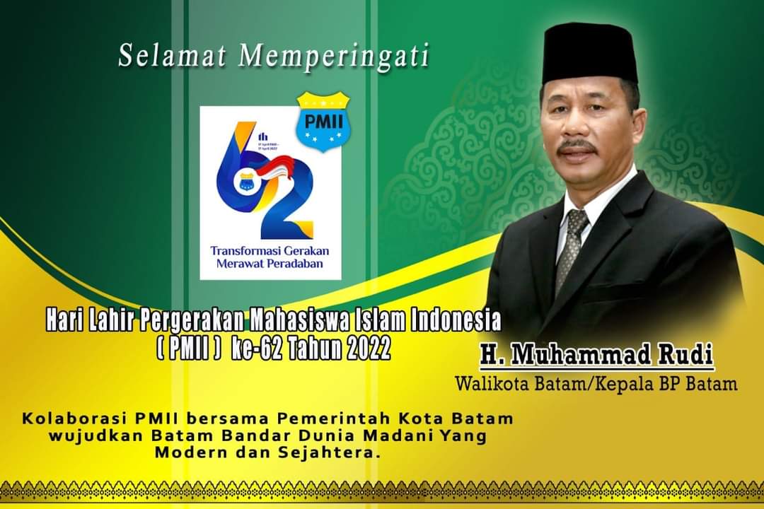 Wali Kota Batam Muhammad Rudi mengucapkan Selamat Hari Lahir (Harlah) untuk PMII yang tahun ini mengusung tema Harlah ‘Transformasi Gerakan Merawat Peradaban’.