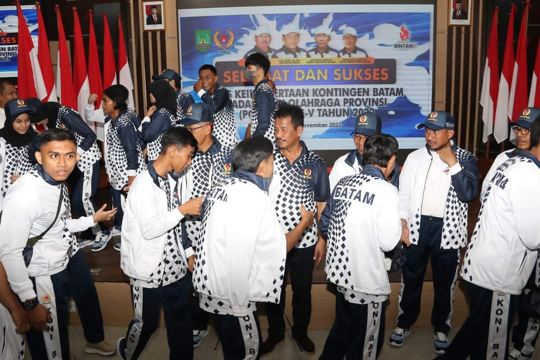 BATAM, Fokuskepri.com – Wali Kota Batam Muhammad Rudi bersama Wakil Wali Kota Batam Amsakar Achmad, melepas kontingen Kota Batam yang akan mengikuti Pekan Olahraga Provinsi (Porprov) Kepri ke-V Tahun 2022 Bintan.