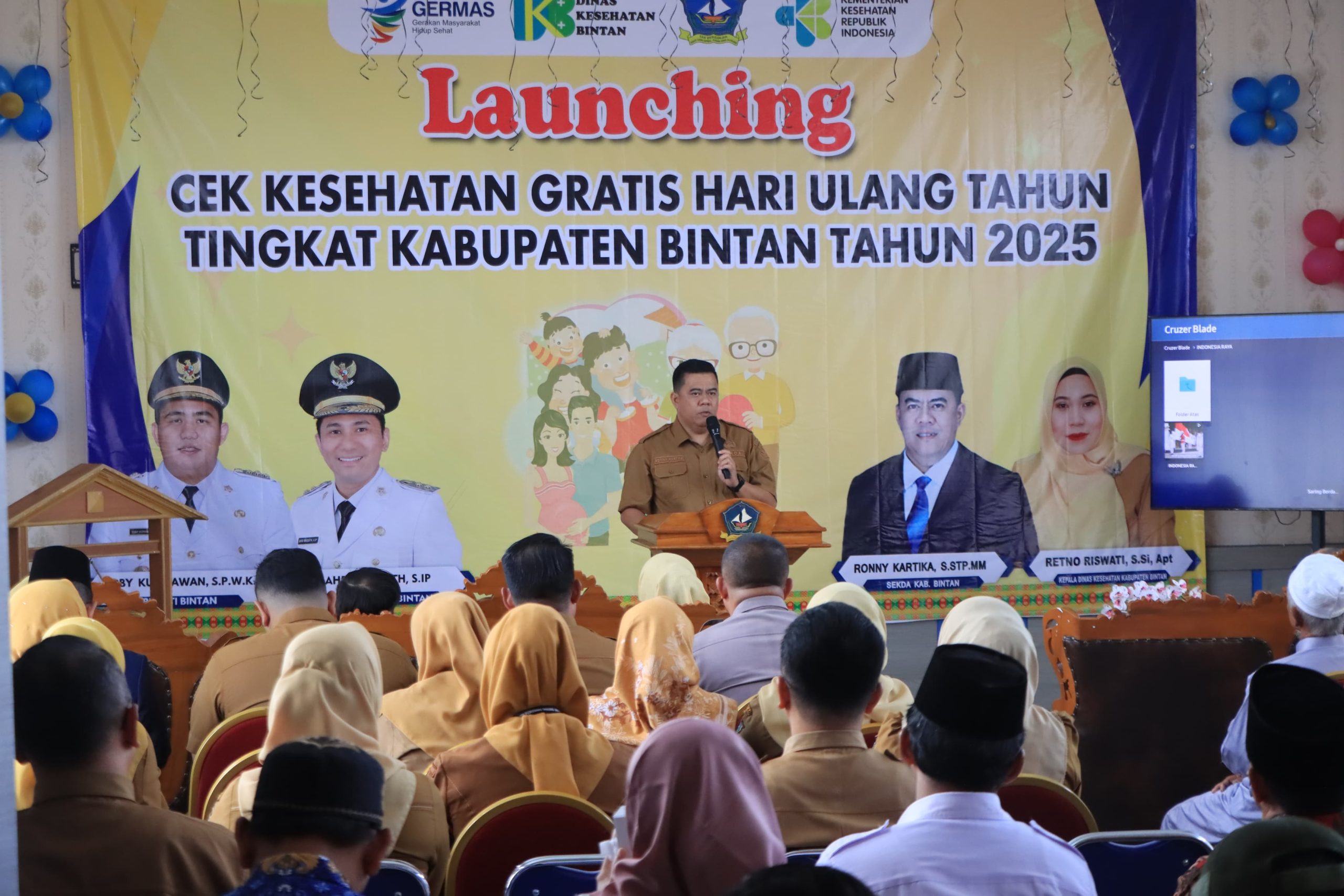 Sekretaris Daerah Kabupaten Bintan Ronny Kartika saat melakukan Launching Program Cek Kesehatan Gratis (CKG) Untuk 3 Kategori yakni pertama CKG khusus Hari Ulang Tahun kemudian CKG khusus ibu hamil, balita dan lansia, Terakhir kategori CKG Sekolah yang akan mulai dilaksanakan pada awal Tahun Ajaran baru mendatang, Senin (17/2/2025).