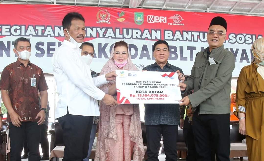 BATAM, Fokuskepri.com – Wali Kota Batam Muhammad Rudi bersama rombongan Komisi VIII DPR RI menyalurkan bantuan sosial PKH BPNT/Sembako dan BLT Minyak Goreng di Dataran Engkuputri Batam, Selasa (19/4).