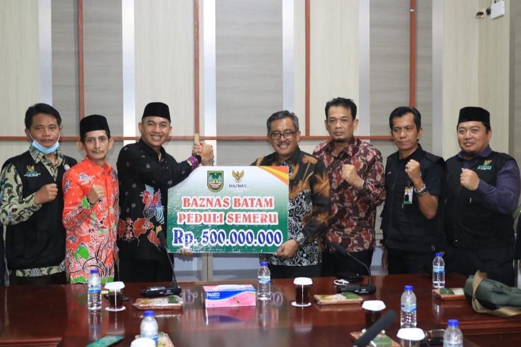 BATAM, Fokuskepri.com – Pemerintah Kota Batam dan Baznas Kota Batam menyerahkan bantuan Rp500 juta untuk warga terdampak erupsi Gunung Semeru di Lumajang, Jawa Timur, Kamis (13/1/2021).