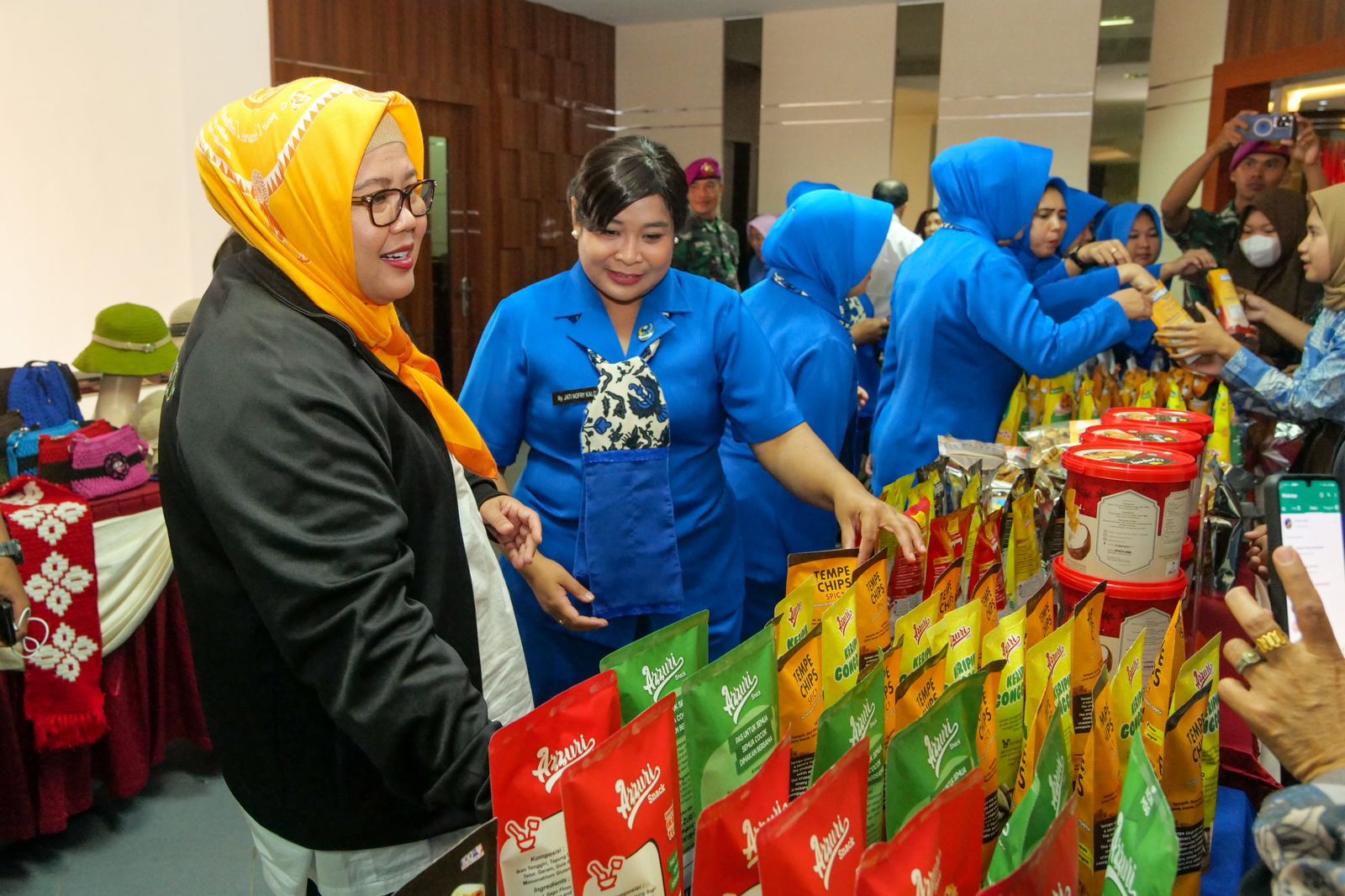 Selain melalui sambutan-sambutan, pertemuan itu tampak berlangsung hangat dan akrab. Marlin pun membawa ibu-ibu Jalasenastri melihat berbagai produk yang dibuat oleh Dekranasda Kota Batam.