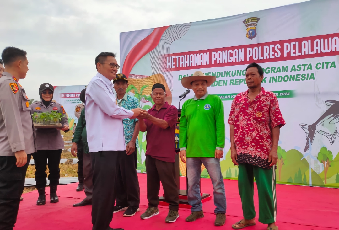 dalam mendukung sepenuhnya program asta cita Polres Pelalawan yang merupakan program Presiden Republik Indonesia untuk mendukung swasembada pangan. Kami juga mengucapkan terima kasih kepada OPD dan jajaran yang telah membantu terlaksananya kegiatan ini. Harapan kita akan banyak program-program seperti ini dan semoga seluruh tahapan mulai dari penanaman hingga panen dapat berjalan lancar. Kita harus bersinergi, bekerja sama dan sama-sama bekerja agar hasilnya lebih baik.” Tutur Pjs. Bupati Pelalawan.