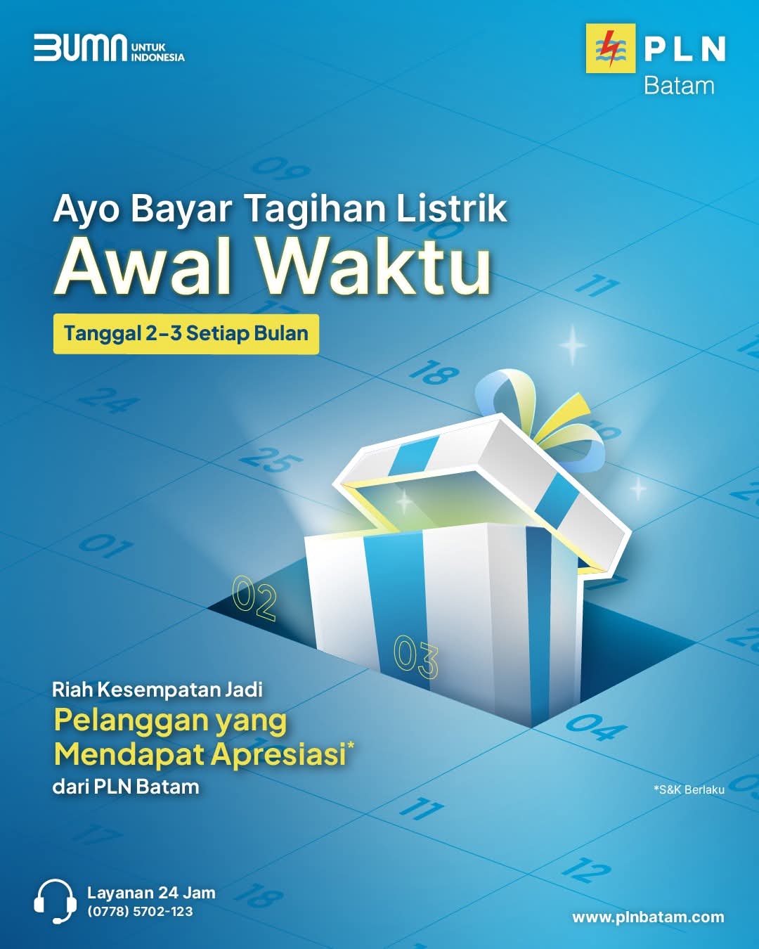 PLN Batam juga menyebutkan bahwa pengecekan dan pembayaran tagihan listrik kini sudah dapat dilakukan sejak tanggal 2 setiap bulannya.