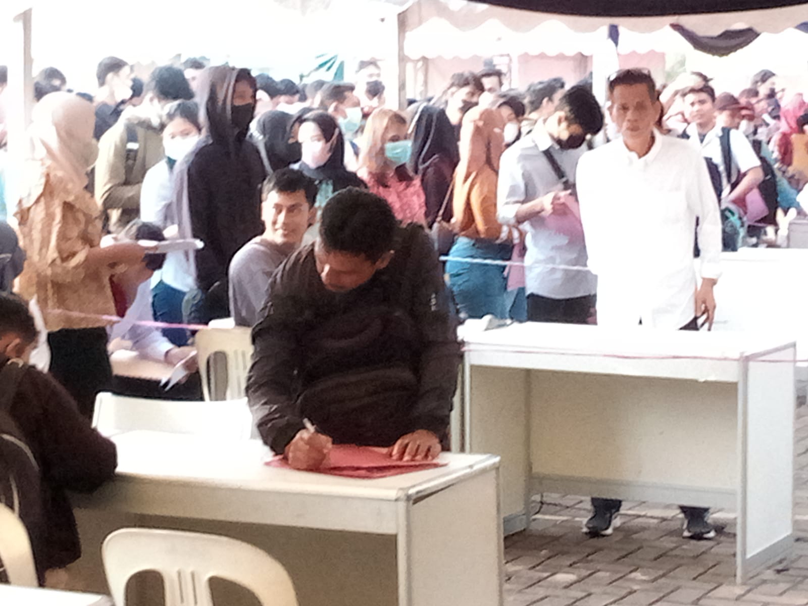 Di hari pertama, sempat terjadi desakan akibat banyaknya pelamar kerja yang datang ke lokasi Job Fair Batam 2022.