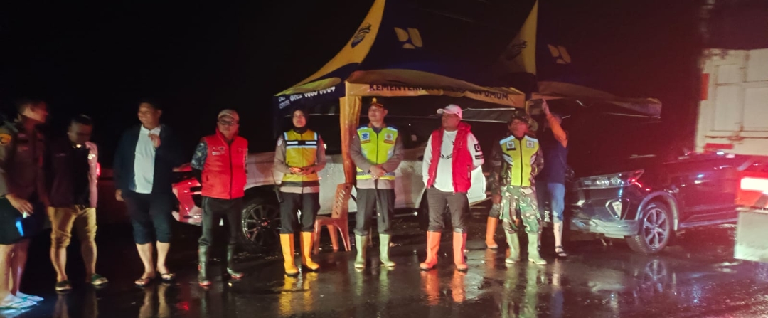 PELALAWAN (Fokuskepri) – Bupati Pelalawan H. Zukri bersama Ketua DPRD dan Kapolres Pelalawan tinjau kondisi banjir dan kemacetan di jalan Lintas Timur KM 73-83 Desa Kemang Kecamatan Pangkalan Kuras. Selasa (27/01/2025) malam, ketinggian debit air pada saat itu mencapai 43 centimeter, arus lalu lintas diberlakukan buka tutup untuk mengurangi kemacetan panjang.